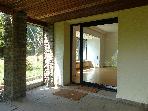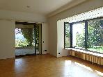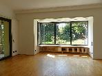 Die Wohnung im Erdgeschoss verfügt über ca. 90 m², 3,5 Zimmer und einen sehr schönen Parkettboden und Solnhofer Platten im Flurbereich. In einem Zimmer befindet sich ein gekachelter Innenkamin. Im Wohnzimmer bietet ein erkerartiges breites Fenster einen tollen Blick in den Garten. Von hier aus betritt man auch die mit Natursteinplatten gestaltete, überdachte Terrasse. Auch von der Küche aus gelangt man in den Garten.
