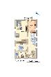 Die Wohnung im Obergeschoss verfügt über ca. 85 m², 3,5 Zimmer und einen Westbalkon, der vom Wohnzimmer aus erreicht wird. Sie ist überwiegend mit Teppichboden ausgestattet. Die Küche kann hier als offene Küche zum Wohnbereich hin geöffnet werden.