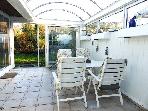 Das massive Architektenhaus im Bungalowstil wurde 1964 auf einem 521 m² großen Erbpachtgrundstück errichtet. Es ist nicht unterkellert, bietet aber auch ohne Keller sehr viel Nutzfläche. Das Haus verfügt über einen sehr schönen, gut durchdachten Grundriss. Es gibt ein sehr geräumiges Wohnzimmer mit einer Kaminecke und einem schön abgeteilten Arbeitsbereich. Die Küche lässt sich sehr gut in U-Form einrichten und gegenüber der Küche liegt das Esszimmer mit Zugang zum Garten. An das Wohnzimmer wurde 1987 ein 18 m² großer Wintergarten mit Glasdach gebaut. Es gibt drei Schlafzimmer sowie ein Bad mit Wanne und Dusche mit einem Oberlicht als Lichtquelle. Der Eingang mit kleinem Flur befindet sich an der Westseite. Es gibt dort auch ein Gäste-WC und einen Abstellraum. Das Haus bietet durch die Einbauten und Schranknischen viel Stauraum. Hinter dem Schlafzimmer an der Nordseite wurde 1977 ein ca. 11 m² großer Anbau errichtet in dem sich ein kleiner Hauswirtschaftsraum mit WC und Dusche und davor eine Laube befinden.